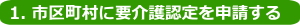 ![]() ■申請場所 ・市区町村の役所にある高齢者福祉窓口 ・地域包括支援センター ■申請者 ・ご本人が申請できます。 ・ご家族による代理申請も可能です。 ■必要なもの ・介護保険被保険者証 ・主治医の氏名や医療機関名などの情報 ![]() ■申請後、ご自宅に市区町村の職員などが訪問し、ご本人の心身の状態などについて聞き取り調査を行います。 同時に、主治医に意見書の作成を依頼します。 ![]() ■訪問調査と主治医の意見書をもとに、要介護度が判定されます。結果は原則として申請から30日以内に 通知されます。 ![]() ■要介護認定を受けた場合、介護保険サービス全般の専門家であるケアマネジャーを選びます。 ■お住まいの地域を担当している居宅介護支援事業所から選ぶのが一般的です。 ![]() ■ケアマネジャーがご本人やご家族の希望を聞き、最適なサービス内容や利用回数などを盛り込んだ 「ケアプラン」を作成します。 ■デイサービスは、このケアプランに基づいて提供されることになります。 ![]() ■ケアマネジャーがケアプランに沿った事業所の候補をいくつか提案してくれます。 ■事業所の見学を行い、雰囲気やサービス内容などを確認して選びます。 ![]() ■ケアマネジャー、デイサービスの担当者、ご本人、ご家族などが集まり、ケアプランの内容を 確認■調整します。 ■情報共有や最終的な打ち合わせを行います。 ![]() ■最終的に利用するデイサービス事業所と正式な契約を結びます。 ![]() ■契約が完了すれば、デイサービスの利用が始まります。事業所の送迎車が自宅まで迎えに来てくれます。 |